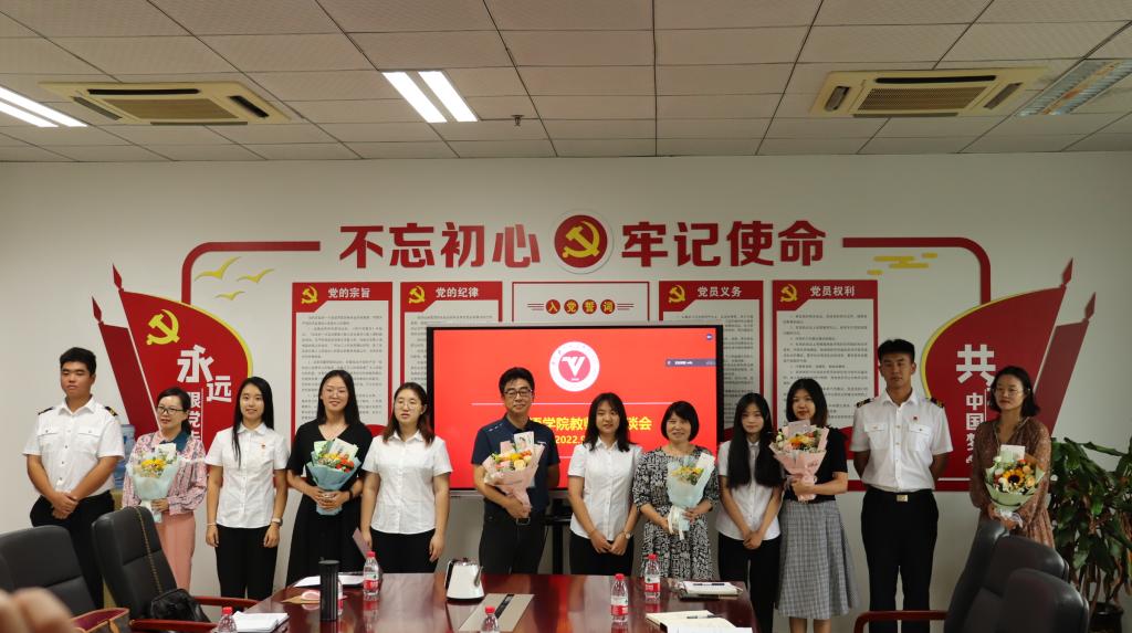 随后,6位优秀教师代表作交流发言。英语系王艳强老师以“良心”和“压力”为关键词,分享了高校教育的特殊性和信息时代对高校教师提出的新要求。翻译系刘武老师也以“压力”为题,分享了自己备课上课以及与学生相处的心得体会。飞行基础英语教研室周丹强玉老师分享了她从教12年来的宝贵经验,她认为作为一名教师,就要付出一生的热情,在明确学生定位的同时,也不能放弃对自身的提高。乘务英语教研室罗艺老师讲述了她所坚持的“双向奔赴”的教学,即以老师的真心换学生的真心。大学外语教研室赵晨老师提出对学生要不吝赞美,要用教师的人格魅力去感化学生。民航英语教研室吴晓亮老师则分享了自己对“学高为师,身正为范”和“爱心教育”的独到见解。6位优秀教师代表的交流发言情感真挚、内容充实、极具启发性,赢得了在场人员的阵阵掌声。英语系蒲栗立老师代表新进教师发言,她分享了入职以来在学生工作、民航知识学习、教学竞赛和培训学习等方面的心得体会。蒲老师的发言充分展现了一位新进教师的风采,也为学院其他新进教师树立了良好榜样。
