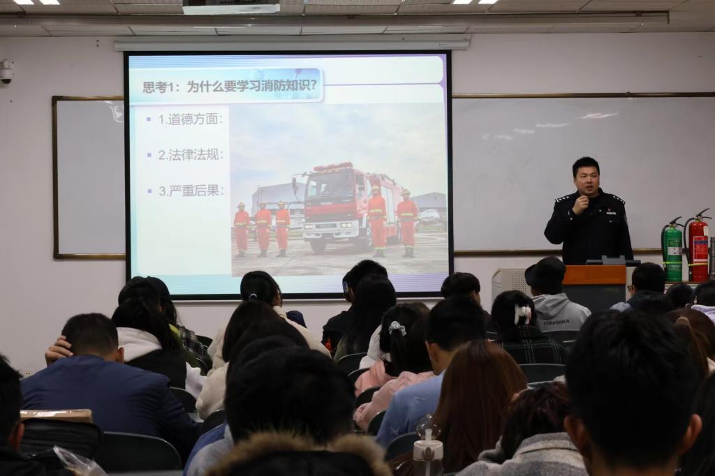 为进一步加强学生消防安全教育,树立正确的消防安全意识,切实提高学生防灾减灾能力。近日,kaiyun开云官方特邀中国民用航空飞行学院公安局消防支队副主任李凯庆、教官林伟在五教412教室开展了主题为“共筑心中‘防火墙’,搭起生命安全网”的消防安全培训讲座。本次讲座由班主任曾楠葳老师主持。