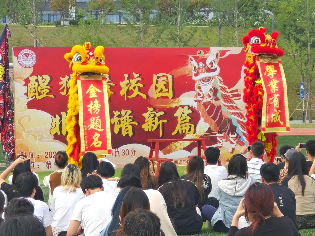 活动以“朱砂点睛”仪式拉开序幕,象征祥瑞与希望的醒狮在激昂的锣鼓声中灵动起舞,生菜被抛撒在空中,生菜谐音"生财",飞扬的菜叶带着美好的祝福,为校园增添了一份别样的喜庆与活力。威武的醒狮或腾空跃起,精湛的技艺与矫健的身姿赢得现场阵阵掌声。随后的学生体验环节中,同学们在专业舞狮师傅的指导下,穿戴狮头狮被,学习基本舞步,身感受非遗技艺的魅力与传承的深意。
