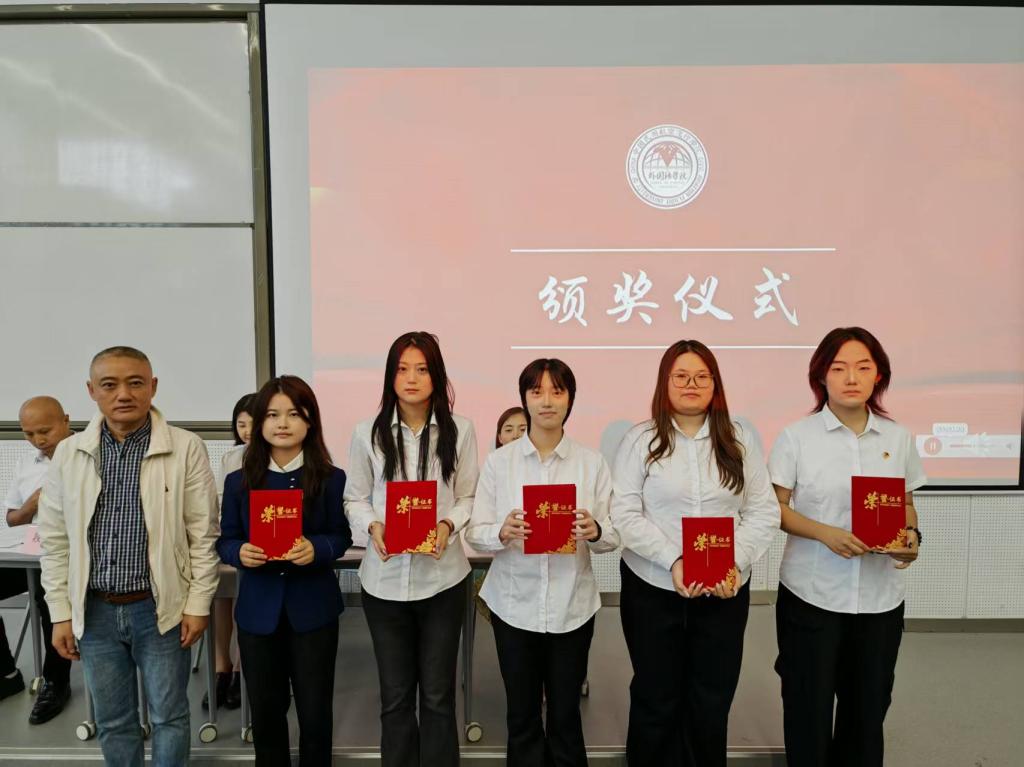 随后,副院长陈华妮宣读2024-2025学年表彰决定。本次表彰覆盖11个类别(包括:优秀班集体、暑期优秀社会实践团队、三好学生、优秀学生干部、优秀共青团干部、学习标兵、优秀共青团员、优秀志愿者、优秀共青团干事、科研标兵、竞赛优秀奖等),学院领导为获奖集体与个人逐一颁奖,现场掌声此起彼伏,榜样力量直观传递。
