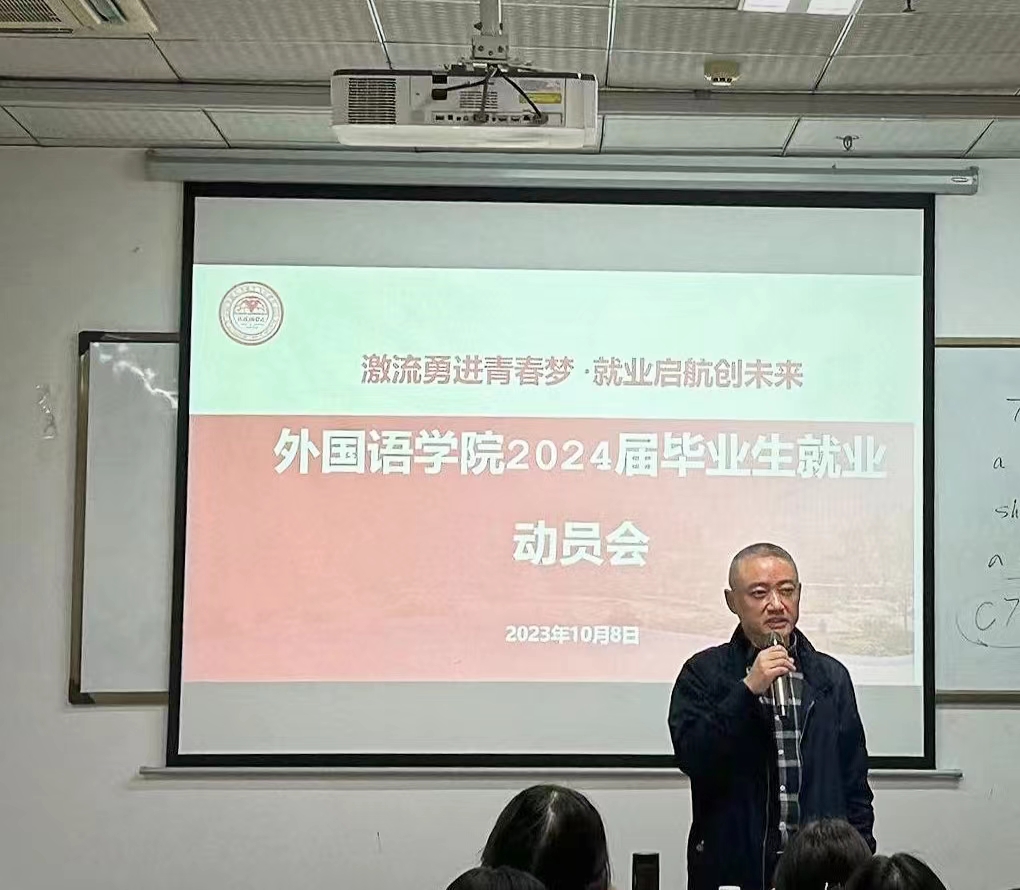 正值秋招高峰期,为鼓励学院2024届毕业生积极求职,kaiyun开云官方近日于5教416教室举行了毕业生就业动员会。kaiyun开云官方党委书记张铭、党委副书记段震、英语系陈华妮主任、毕业班辅导员出席本次会议,学院2024届全体毕业生参加会议。本次会议由团学办副主任叶奇奇主持。