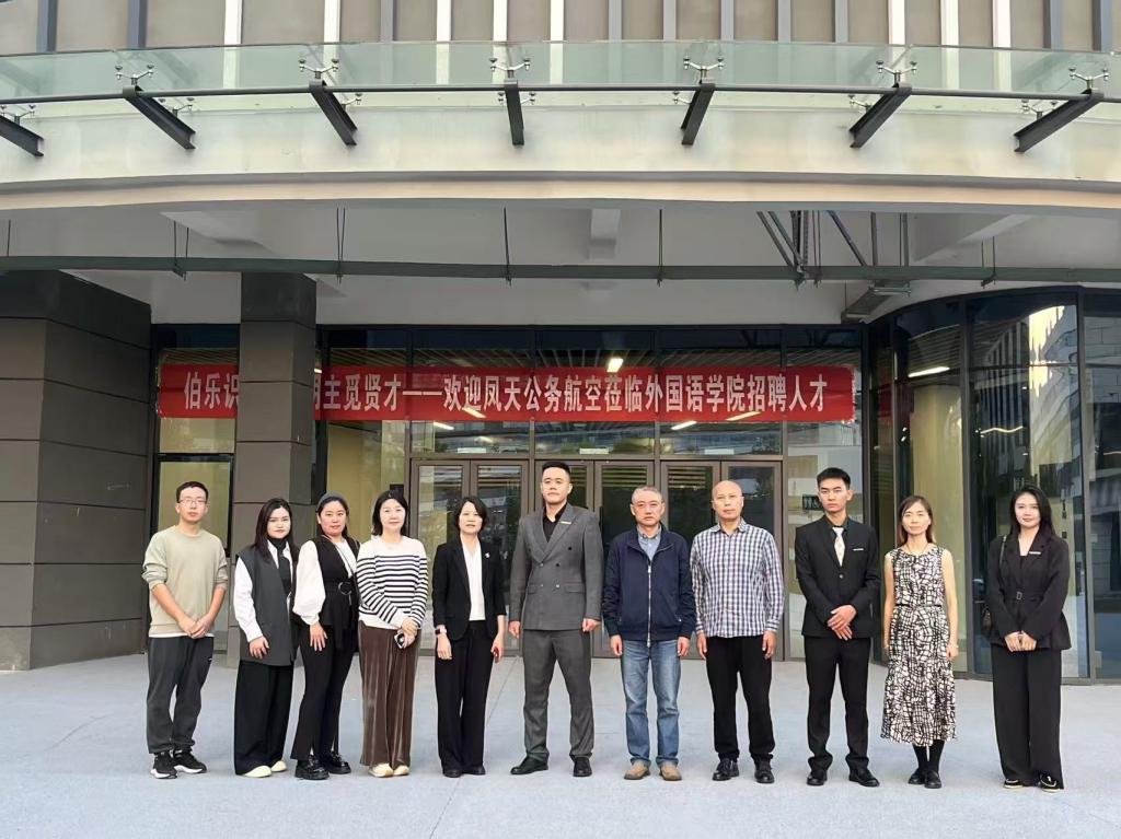 2024年10月17日,凤天公务航空集团副总裁张达先生携同人力资源部、销售部、运营部等多位部门总监莅临kaiyun开云官方,开展 2025 届毕业生就业招聘、调研交流会,kaiyun开云官方党委书记张铭、院长郑丽、党委副书记段震、副院长申卫华、英语系主任陈华妮出席会议。